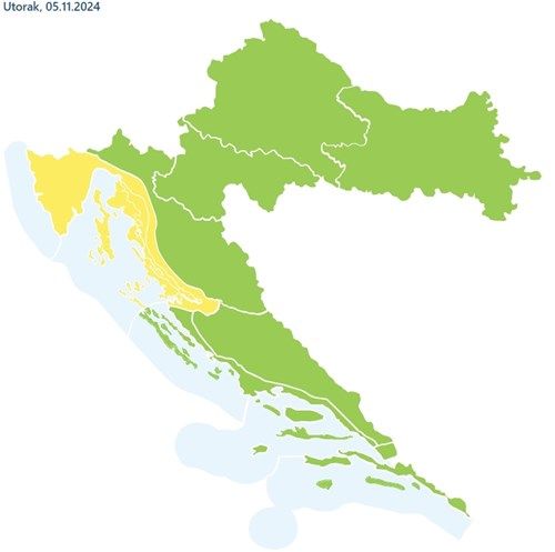 Najviša dnevna temperatura uglavnom između 10 i 15, a na Jadranu te u unutrašnjosti Istre i Dalmacije od 18 do 22 Celzijeva stupnja