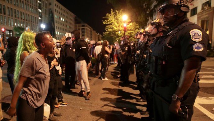 U Washingtonu su prosvjednici locirani u Park Lafayetteu ispred Bijele kuće, no marširaju i drugim dijelovima grada uzvikujući: “Bez pravde nema mira”.