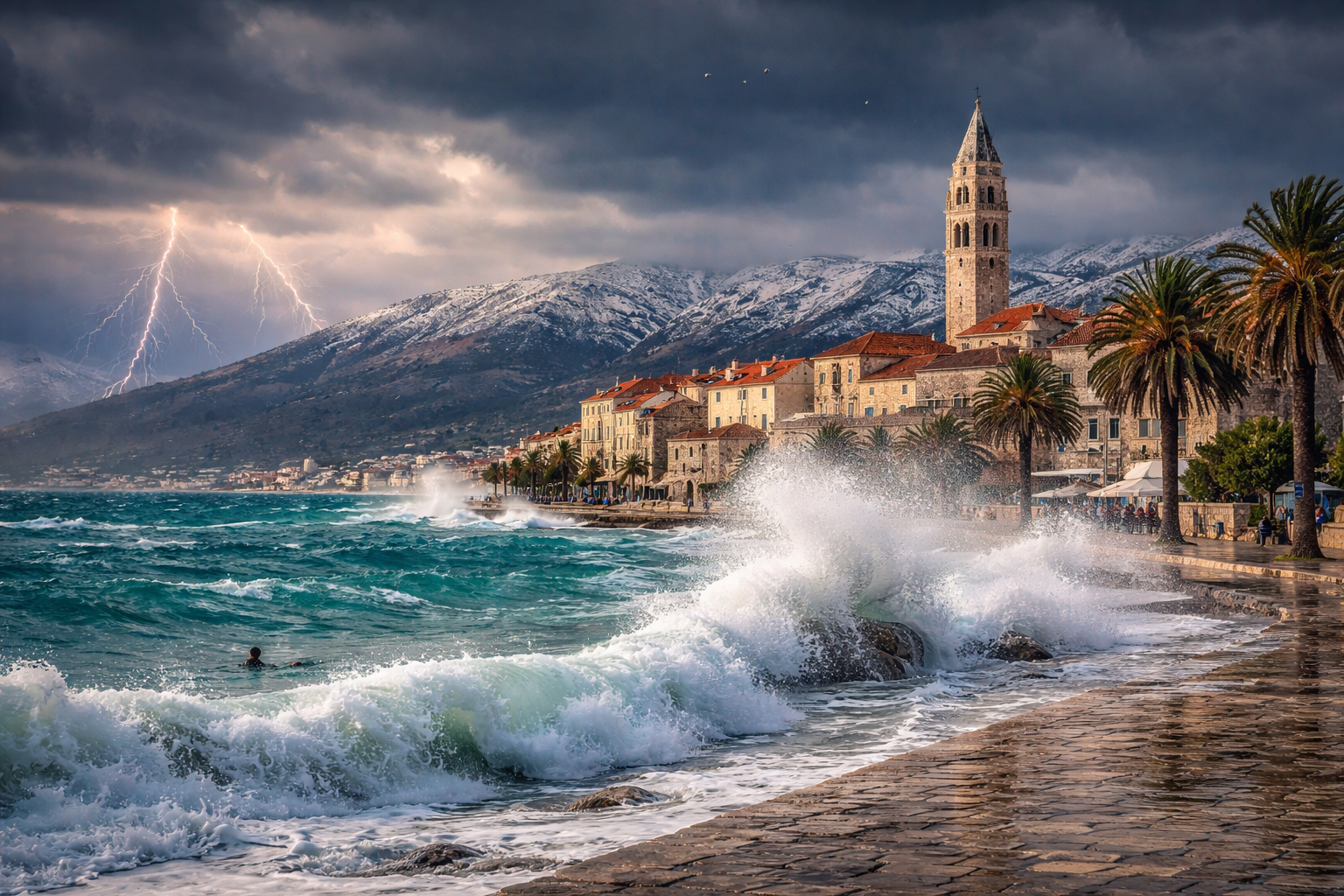 Na sjevernom Jadranu i u Gorskoj Hrvatskoj očekuje se pretežno oblačno vrijeme s čestom kišom. Lokalno su mogući izraženiji pljuskovi s grmljavinom, dok će u višim predjelima padati snijeg. Poslijepodne dolazi osjetno zahlađenje i okretanje vjetra na buru.