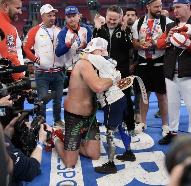 A nakon meča Fury je još jednom pokazao da je zaista prvak iz naroda. Naime jedan njegov mlađi obožavatelj čekao je kraj meča kako bi upoznao svog junaka. Dopustili su mu da sdođe u ring, a Fury se spustio na koljena i zagrlio dječaka koji nažalost hoda uz pomoć proteza, a nema ni ruke.