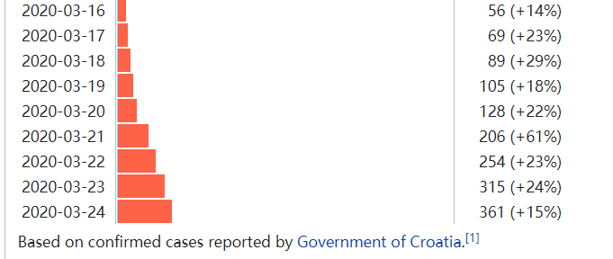 Iako se na prvi pogled čini da epidemija u Hrvatskoj ubrzava, današnji rast od 46 zaražene osobe je manji od očekivanog, u postocima riječ je o rastu od 15% . Ukoliko uspoređujemo taj podatak s prijašnjim danima, riječ je o usporenom rastu zaraza što je ohrabrujuće, ali narednih nekoliko dana treba obratiti pozornost na dva faktora: