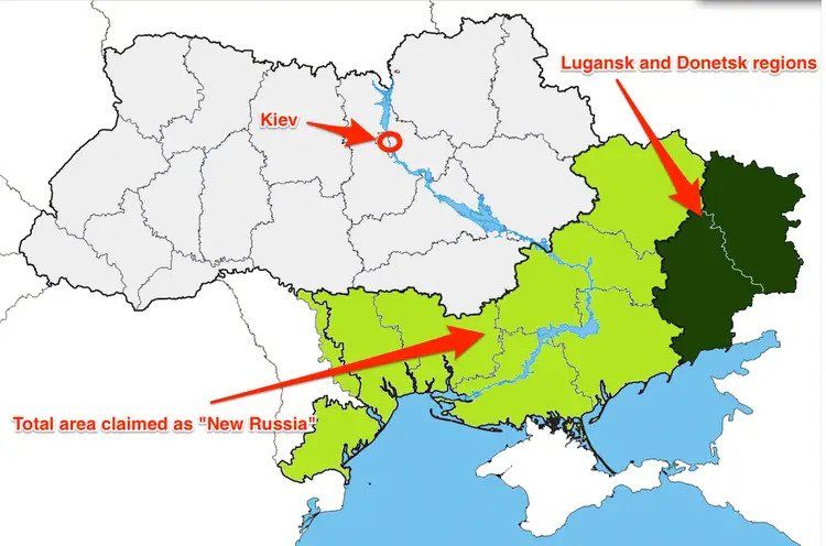 Međutim, prema stanju na ratištu, Rusi su trenutno daleko i od rezervnog cilja. Od većih gradova u zamišljenoj istočnoj Ukrajini ili Novorossiyi, Rusi su u aktualnoj invaziji okupirali jedino Kherson kojeg su okružili ukrajinski branitelji. Nije uspjela okupacija Mykolaiva koji je bio preduvjet da se krene prema Odessi i Ukrajina odsječe od Crnog mora. Drugi ukrajinski grad po veličini Harkiv je čvrsto u ukrajinskim rukama na sjeveroistoku i na tom dijelu fronte inicijativu ima ukrajinska vojska. Ne dođe li do većih promjena u odnosu snaga, jedini Putinov ratni uspjeh ostao bi izgledno osvajanje Mariupola i kopneno spajanje Krima s regijama koje su Rusi okupirali još 2014.