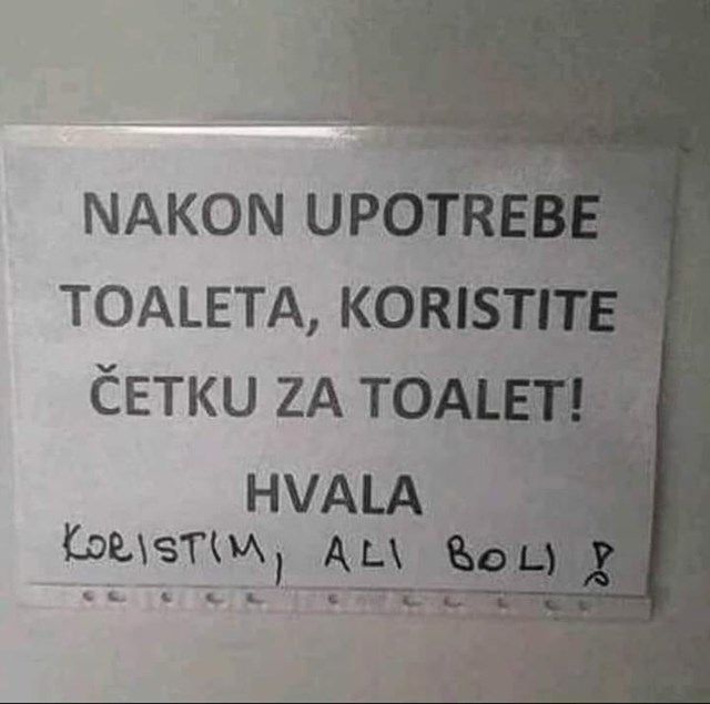 Home Mozaik Nasmijte se do suza: Neobičan komentar iznad WC školjke postao hit na... Mozaik Nasmijte se do suza: Neobičan komentar iznad WC školjke postao hit na Balkanu! By admin - January 9, 2024 0 FacebookTwitterPinterestWhatsAppTelegram Je li riječ o šali ili istini? (lajk) Netko je razbio ulazna vrata zgrade, poruka koja je zatim osvanula ugodno je iznenađenje Netko je primijetio zanimljiv detalj na fotki Tita i Jovanke i svojim komentarom nasmijao region