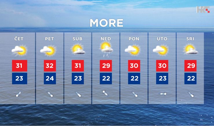 “I sljedećih će se dana zadržati vrlo toplo, u mnogim mjestima i vruće, te na Jadranu i dalje većinom suho i sunčano, uz lokalne pljuskove uglavnom u nedjelju, te uz pretežno slab zapadni i sjeverozapadni vjetar, u nedjelju jugozapadni i jugo. U većini unutrašnjosti nastavak nestabilnog vremena, uz promjenjivu naoblaku i povremenu kišu, uglavnom u obliku pljuskova, osobito tijekom vikenda. Mali predah od kiše u većini kontinentalnih krajeva najvjerojatniji je u ponedjeljak”, kaže Dragoslav Dragojlović iz DHMZ-a za HRT.
