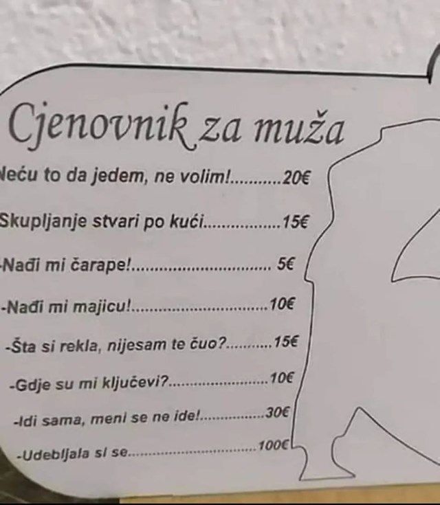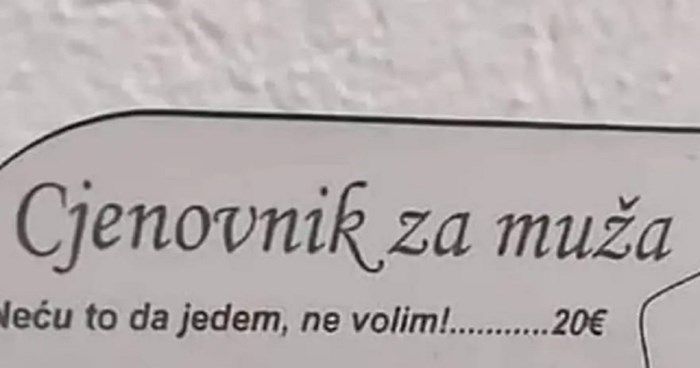 Home Mozaik Neprocjenjivo: Originalni cjenik supruge postao hit među ženama u regiji! Mozaik Neprocjenjivo: Originalni cjenik supruge postao hit među ženama u regiji! By admin - January 9, 2024 0 FacebookTwitterPinterestWhatsAppTelegram Tajanstvena junakinja osvaja regiju: Žene ju slave, dok muškarci nisu oduševljeni. Muškarca je nakon obavljene nužde dočekalo neugodno iznenađenje, žena mu se osvetila