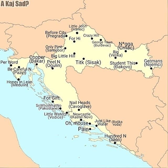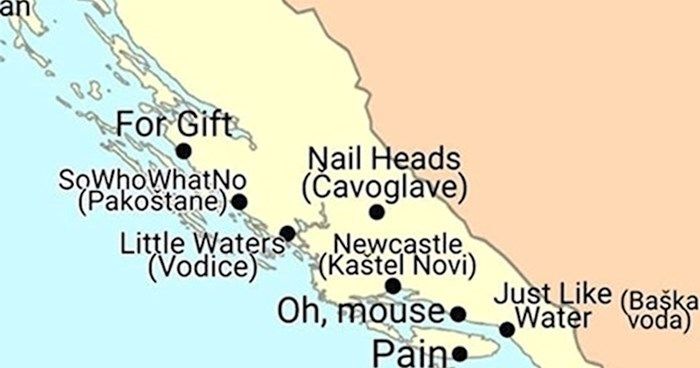 Home Mozaik Netko je napravio kartu Hrvatske s doslovnim prijevodima imena gradova na engleski Mozaik Netko je napravio kartu Hrvatske s doslovnim prijevodima imena gradova na engleski By dš - June 26, 2023 0 FacebookTwitterPinterestWhatsAppTelegram Na Facebooku se pojavila jedna zanimljiva karta Hrvatske. Posebna je po tome što imena gradova nisu napisana na hrvatskom jeziku, nego su doslovno prevedena na engleski, a to naravno uopće nema smisla.