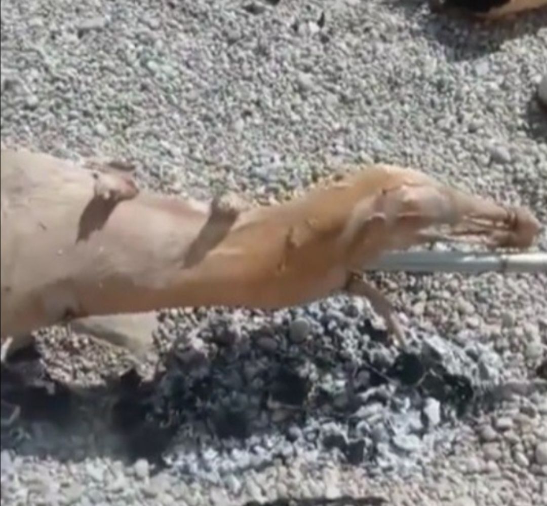 Na snimci se vidi kako nepoznati muškarac okreće janje na ražnju, dok su oko njega začuđeni kupači.