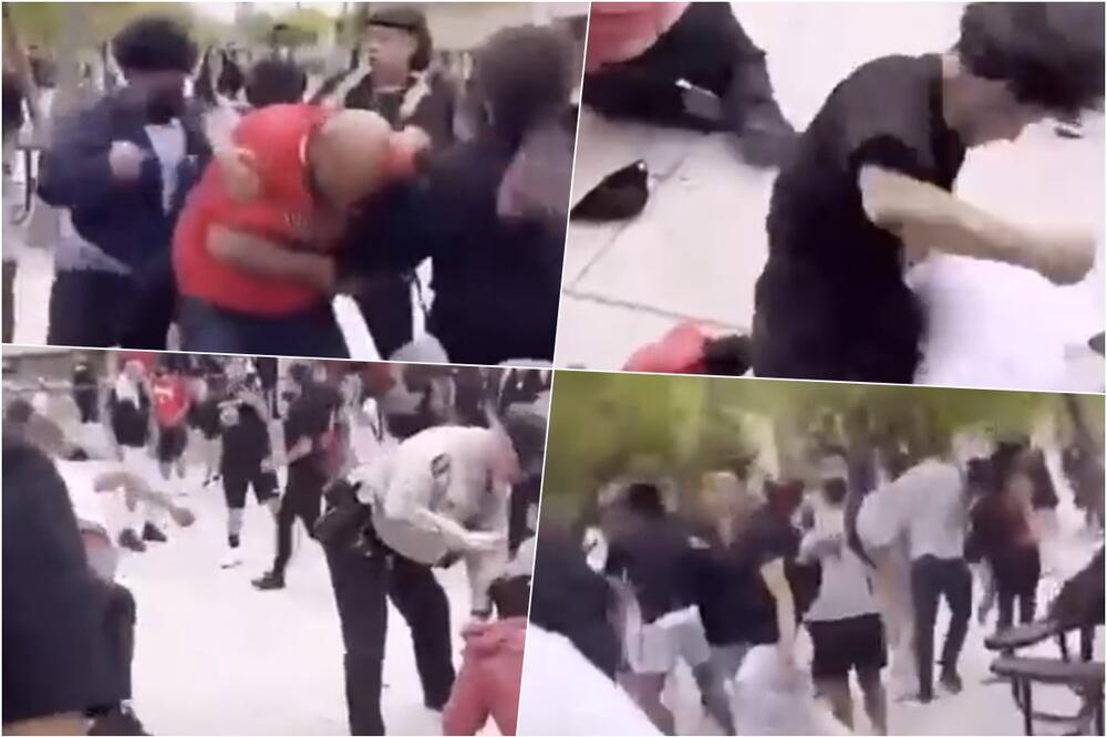 Tučnjava je počela nakon što je roditelj, odjeven u crvenu košulju i traperice, navodno ušao u kampus kako bi se suočio sa grupom djece koja su napala njegovog sina s posebnim potrebama.