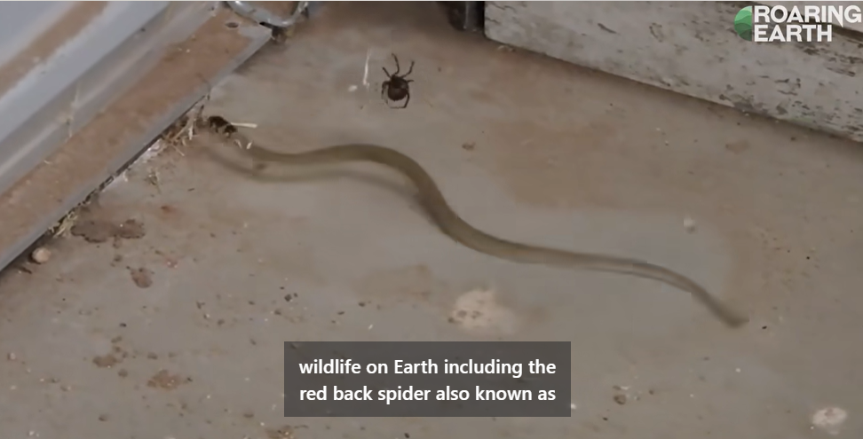 Odrasla udovica pauk – identificirana kao pripadnik roda Latrodectus – vodila je epsku bitku s otrovnom smeđom zmijom, jednom od najčešćih vrsta zmija koje se nalaze u Australiji. Susret je izgledao gotovo nestvarno, jer se pauk žestoko branio od agresivnih napada zmije.