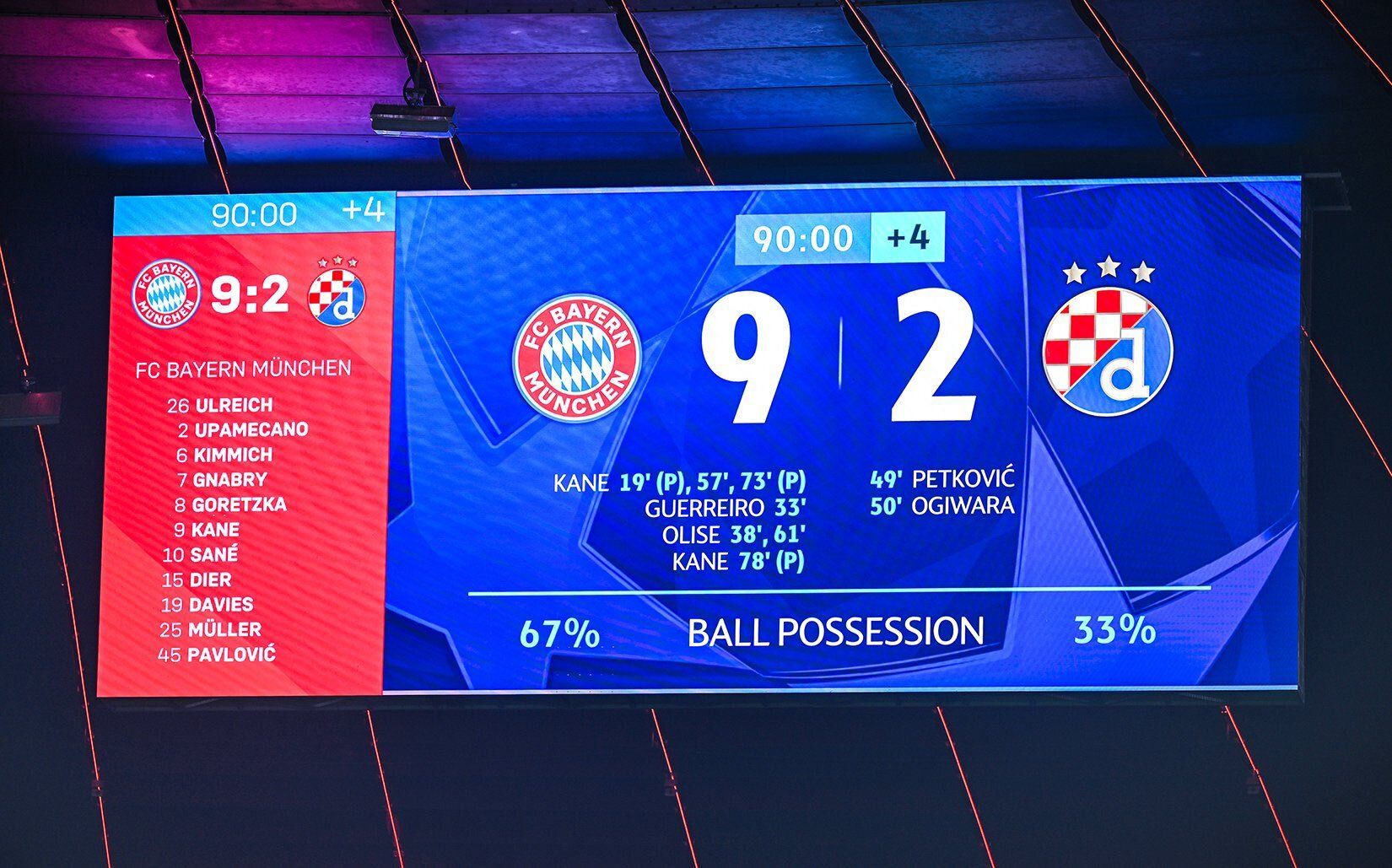 Dinamo Zagreb doživio je težak poraz u prvom kolu Lige prvaka, gdje ga je Bayern München pregazio rezultatom 9:2. Ova utakmica zabilježena je kao povijesna, budući da je Bayern postao prva momčad u povijesti natjecanja koja je postigla devet golova u jednoj utakmici Lige prvaka, dok je Dinamo doživio najteži poraz u svojoj povijesti. Njemački mediji nisu štedjeli riječi kako bi opisali ovaj povijesni ishod, ističući apsolutnu dominaciju Bayerna i nevjerojatnu inferiornost hrvatskog prvaka.