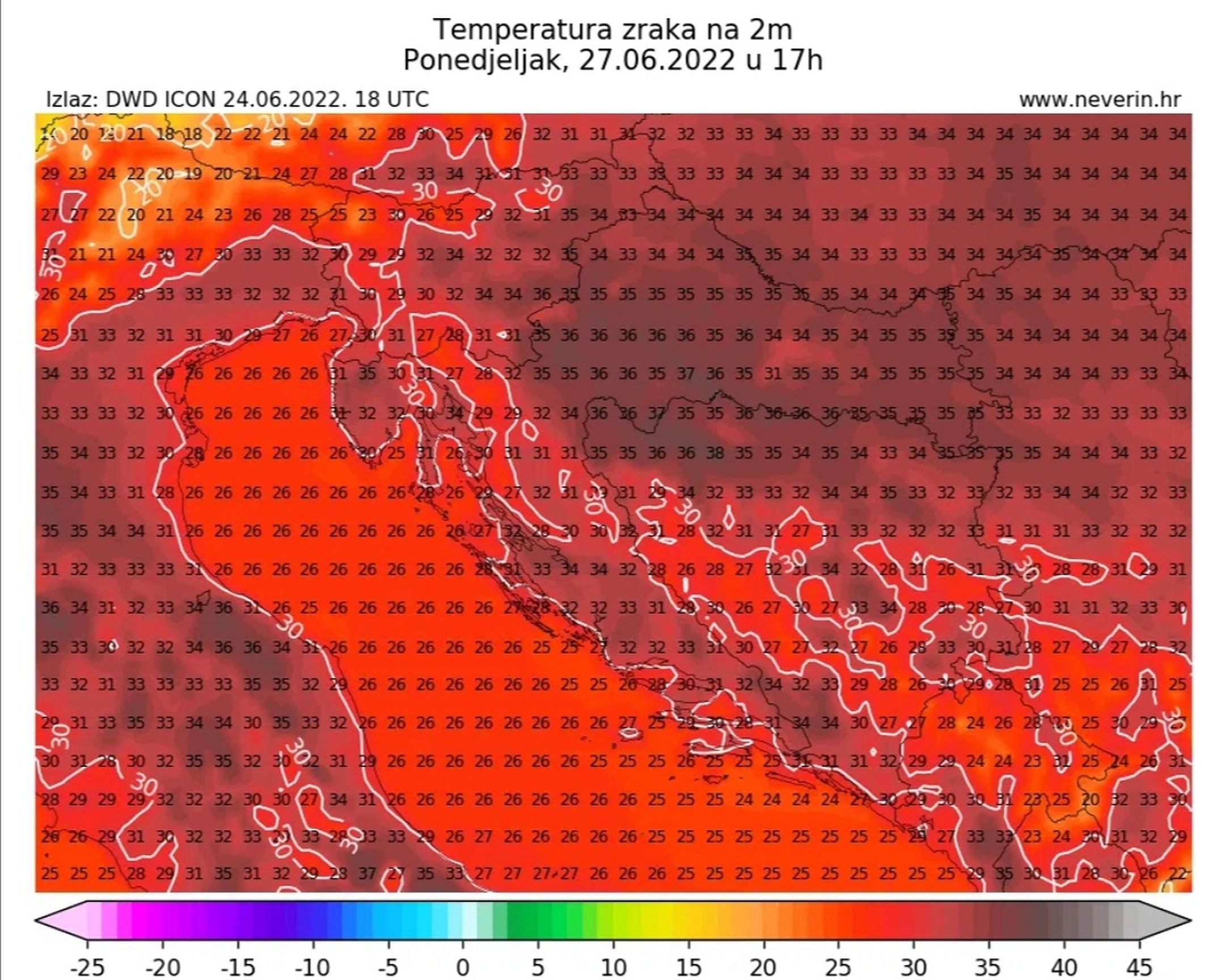 Ono što slijedi je još dan ili dva s relativno normalnim temperaturama za ljeto, a u ponedjeljak slijedi vruć i vrlo vruć dan gdje temperatura na Kvarneru može rasti i do 35 °C, u Gorskom kotaru nešto niže, a unutrašnjosti zemlje i do 40 °C.