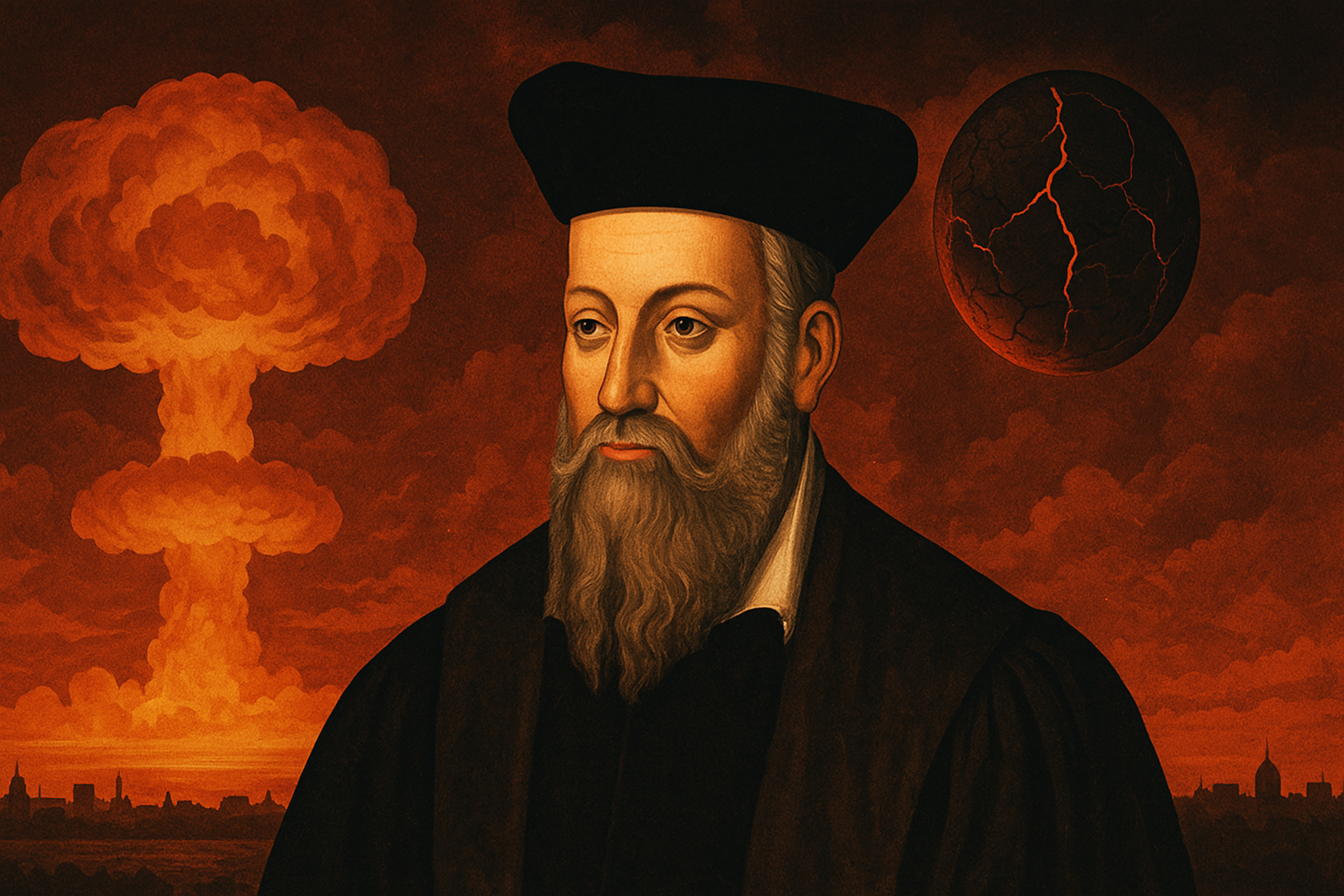 Nostradamus (1503.–1566.) bio je francuski liječnik i astrolog, autor zbirke Les Prophéties iz 1555. godine, koja sadrži 942 poetska katrena. Njegova su se proročanstva naknadno povezivala s povijesnim događajima poput Hitlerova uspona, terorističkih napada 11. rujna i pandemije COVID-19, iako nikada nije jasno naveo konkretne datume.