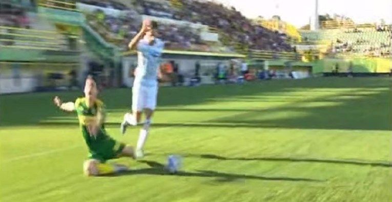 U 65. minuti susreta, pri rezultatu 1:1, desni bočni domaćih, Luka Hujber, sjajno poslužen petom u trku, ide sam prema golu. Međutim, Rijekin krilni napadač, Marko Pjaca, zaustavlja ga u kaznenom prostoru. Hujber se ruši na travnjak i traži penal, no glavni sudac Ante Čulina iz Zagreba, kao ni njegov pomoćnik Luka Pušić, ne signaliziraju ni sude ništa.