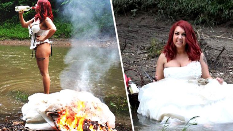 Neki su ovaj priručnik shvatili (previše?) ozbiljno, kao na primjer Katlynn Mckee, koja je odlučila proslaviti kraj svog braka na prilično vizualni način: otišla je do ribnjaka i počela škarama rezati svoju vjenčanicu. Sve pažljivo ovjekovječeno fotografiranjem.