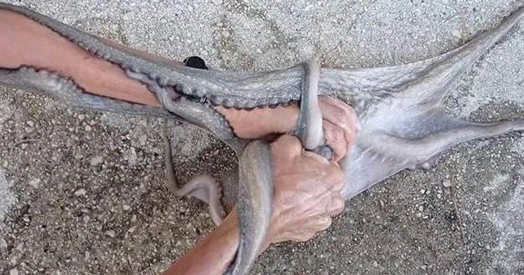 “Pogledala sam i isprva pomislila da je doplivala neka škovaca i omotala mi se oko noge. Instinktivno sam otresla nogu s namjerom da to sklizne s noge. Mislila sam da je neki špag ili najlon, ali kad sam bolje pogledala, shvatila sam da je to hobotnica. Naravno, ushićeno sam uzviknula i pozvala Mariju, moju kći, da dođe pogledati. Ona oduvijek mašta baš o tome da joj se hobotnica zalijepi za nogu, a eto ga, sad se zalijepila na moj gležanj!”, rekla je.