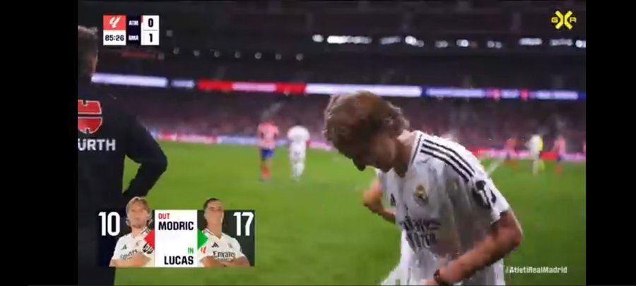 Pomoćni sudac Modriću: Idemo, uđi unutra. Vratit ćemo se za deset minuta. Da, deset minuta Modriću, to je protokol. Protokol za bacanje predmeta u teren. Zamisli da ga pogodi u glavu.