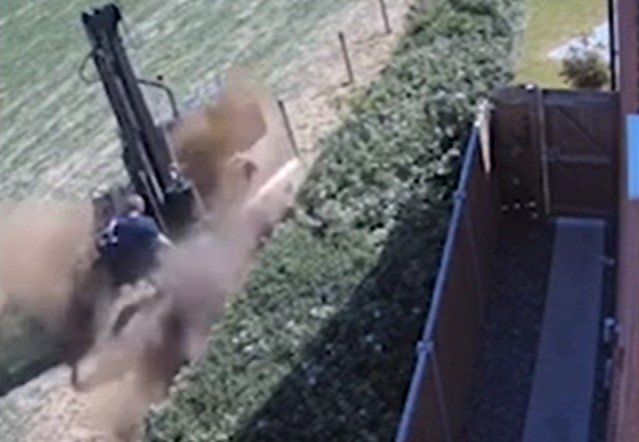 Na snimci iz sela Vesington u Derbyshireu vidi se radnik koji stoji pored stroja koji je ogromnim čekićem zabijao stupove u zemlju. Nakon jednog udarca dogodila se strašna eksplozija i tlo pod njegovim nogama jednostavno je poletjelo prema gore.