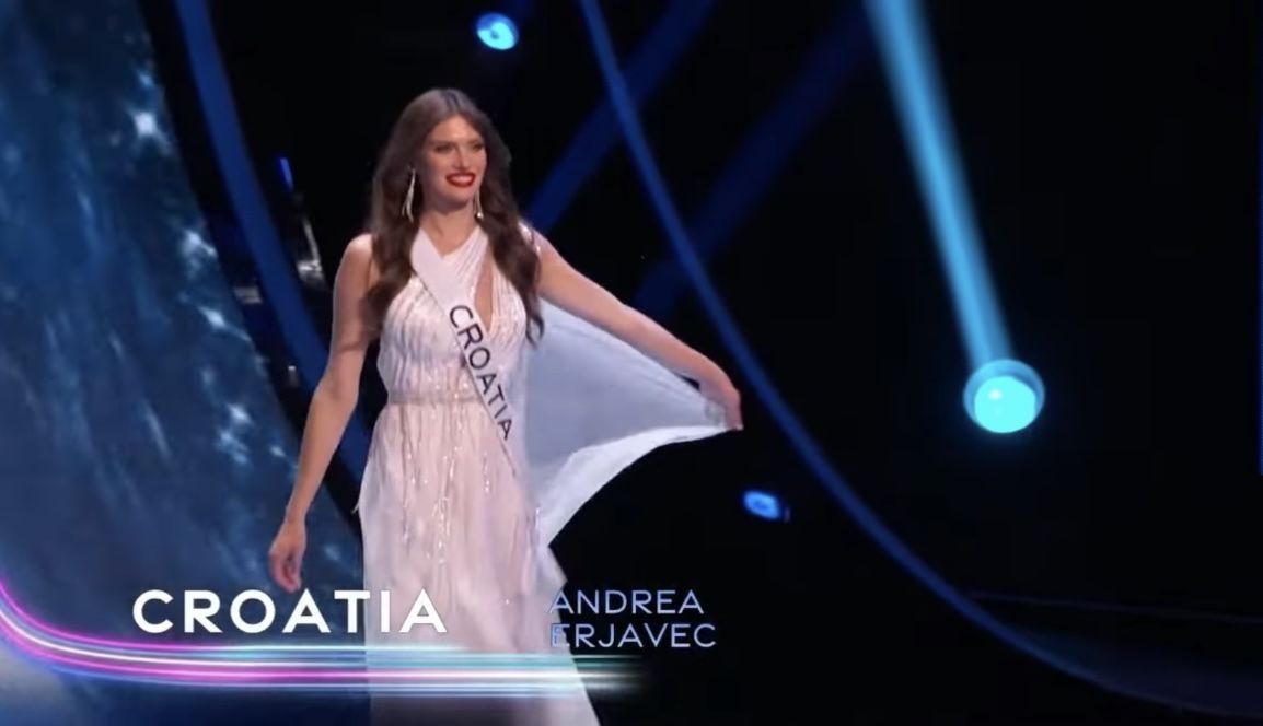 Andrea Erjavec besprijekorno je odradila preliminarno natjecanje noseći elegantnu bijelu haljinu dizajnerice Matije Vuice. Kako je bilo na preliminarnom pogledajte u videu: