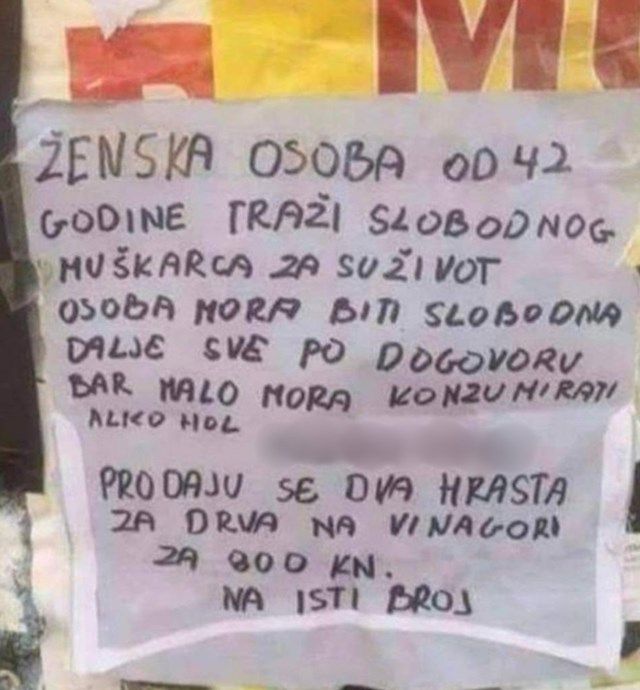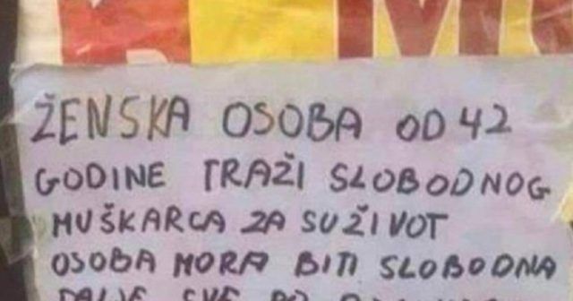 Home Mozaik Oglas u kojem žena traži partnera obišao je Hrvatsku zbog više bizarnih... Mozaik Oglas u kojem žena traži partnera obišao je Hrvatsku zbog više bizarnih detalja! By dš - November 9, 2023 0 FacebookTwitterPinterestWhatsAppTelegram Oglas u kojem žena traži partnera obišao je Hrvatsku zbog više urnebesnih detalja, a jedan uvjet posebno zapinje za oko!