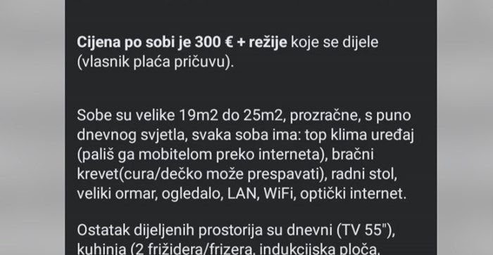 Oglas je definitivno neobičan, ali jako lijepo napisan. Nekima je ovo prevelika cijena po sobi, a neki su oduševljeni koliko je ponuda fer. Što vi mislite?