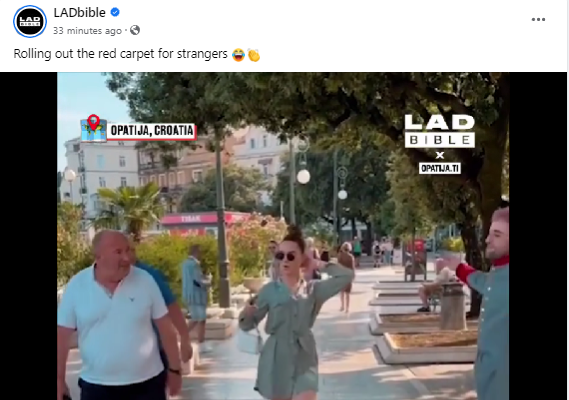 LADbible, popularna britanska platforma s više od 51 milijun pratitelja na Facebooku, ponovno je prenijela sadržaj s TikTok i Instagram profila Opatija.TI, čime je priča o crvenom tepihu još jednom stigla pred oči milijuna gledatelja diljem svijeta. Ovo nije prvi put da se Opatija.TI našla na međunarodnim kanalima, ali potvrda s ovako relevantnog izvora dodatno potvrđuje globalni potencijal ovog projekta.
