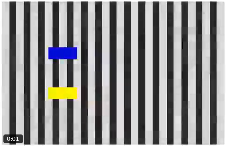Ova fascinantna optička iluzija stvara dojam da se dva pravokutnika kreću poput par stopala u koraku. Na prvi pogled, čini se da jedan pravokutnik “zakorači” ispred drugog, kao da se izmjenjuju u hodu. Međutim, kada se pažljivo pogleda, oba pravokutnika kreću se istom konstantnom brzinom.