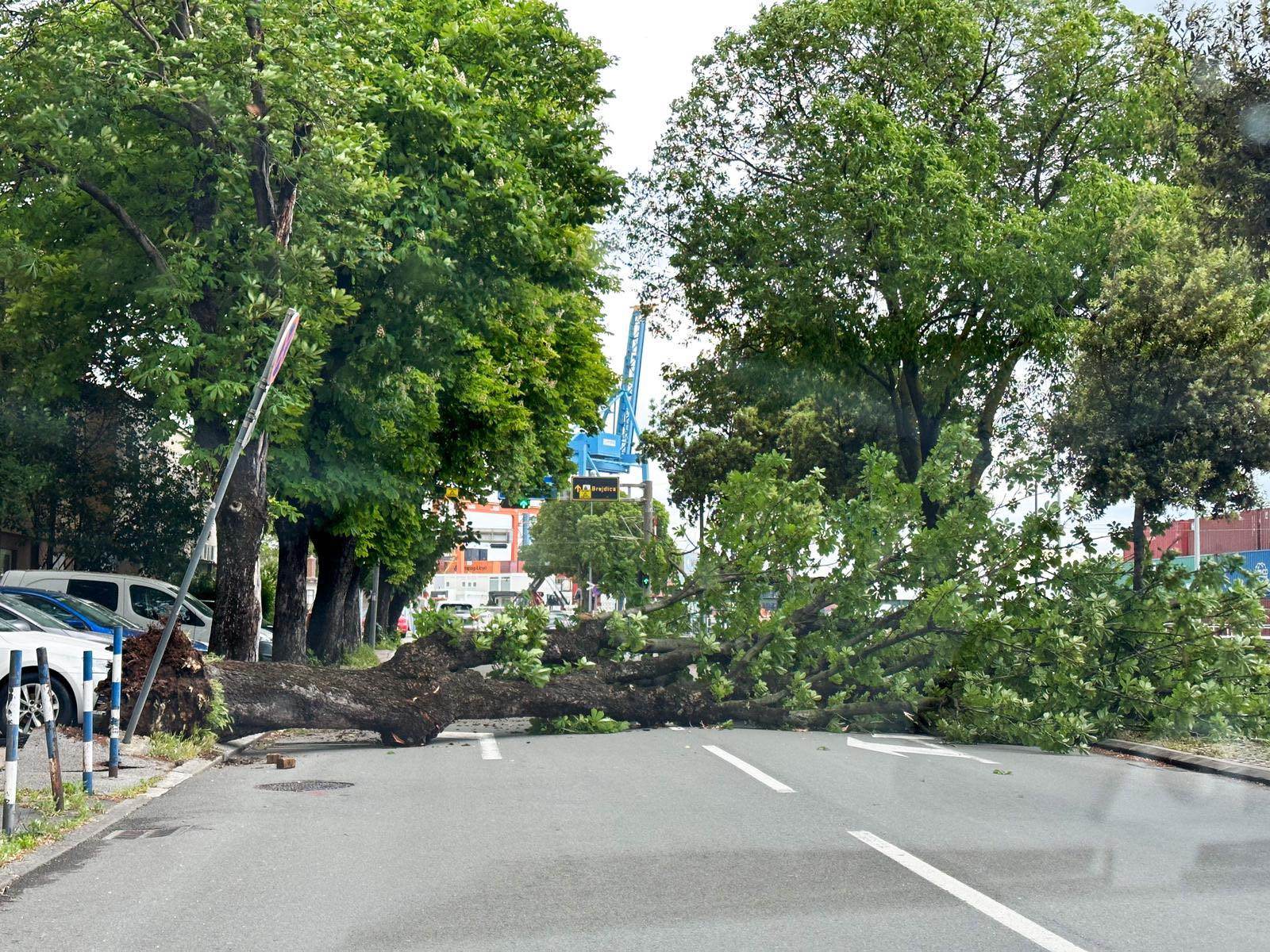 Orkanski vjetar srušio je stablo na Brajdici, promet je u prekidu, vatrogasci ga upravo uklanjaju!