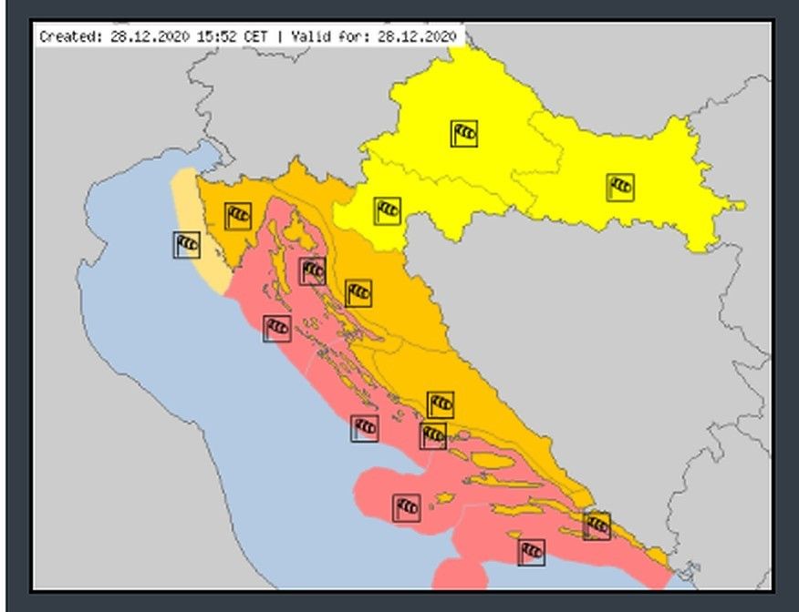 DHMZ izdao je crveno upozorenje za područje Kvarnera i Dalmacije te narančasto upozorenje za područje Istre.