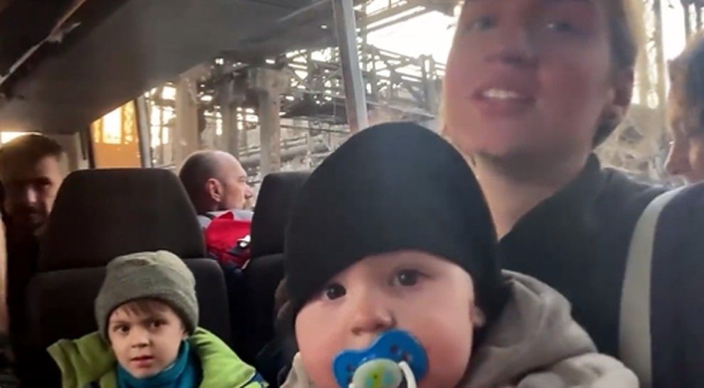 Evacuation of civilians from Mariupol Azovstal began. A first group of 100 evacuees on the way to Zaporizhzhia. It is hard to imagine what these women and children went through in those two months. pic.twitter.com/6mpe2OLEQD
