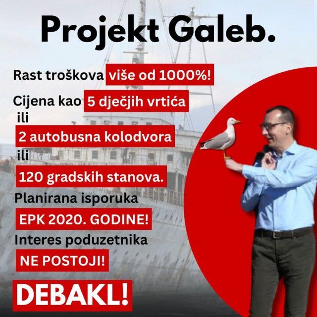 Interes poduzetnika za najam ravan – nuli! Dok drugi gradovi za dosad poznate troškove našeg famoznog broda koji ne plovi izgrade 5 vrtića, dva nova kolodvora ili, pazite sad, 120 GRADSKIH STANOVA ZA MLADE OBITELJI, naš grad se odlučio za Galeba. Treba li našoj Rijeci Galeb, koja je njegova svrha i ispunjava li on nečije najveće fantazije, tema je za neku drugu prigodu.