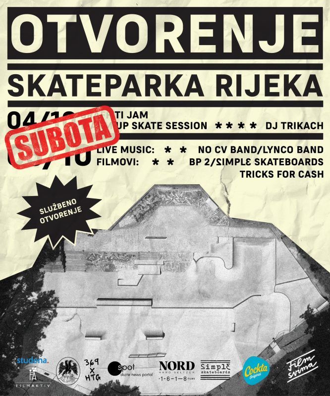 U subotu, 4. listopada 2025., s početkom u 13:30 sati, u Parku Jože Vlahovića na Krnjevu održat će se svečano otvorenje obnovljenog Skate parka. Organizator događaja je Skate klub Cherry, koji je pripremio bogat i raznolik program za sve ljubitelje skateboardinga, glazbe i filma.