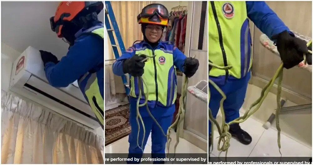 Šest rajskih zmija uhvaćeno je kako se gnijezde unutar klima uređaja u obiteljskoj kući u gradu Langkawi (Malezija).
