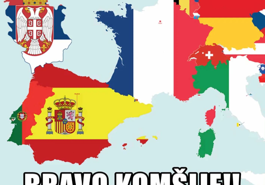 “Bravo, komšije”, piše uz kartu na kojoj je Srbija osvanula uz Španjolsku, pa su na taj način čestitali “susjedima” Španjolcima.