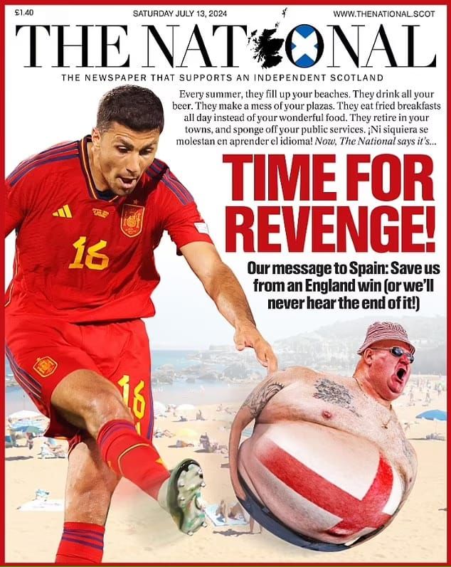 “The National, ‘novine koje podržavaju neovisnu Škotsku’, objavile su šokantnu naslovnicu uoči dugo očekivane utakmice u nedjelju između Engleza i Španjolaca.