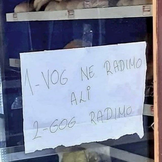 Home Mozaik Ovakvo radno vrijeme još niste vidjeli, pogledajte što je napisao vlasnik ovog... Mozaik Ovakvo radno vrijeme još niste vidjeli, pogledajte što je napisao vlasnik ovog dućana By dš - August 9, 2023 0 FacebookTwitterPinterestWhatsAppTelegram Kupci koji su došli do ulaznih vrata ove radnje imali su priliku vidjeti obavijest kakvu vjerojatno nikad nisu vidjeli. Vlasnik dućana ima svoj vlastiti pravopis i način pisanja datuma. 😜