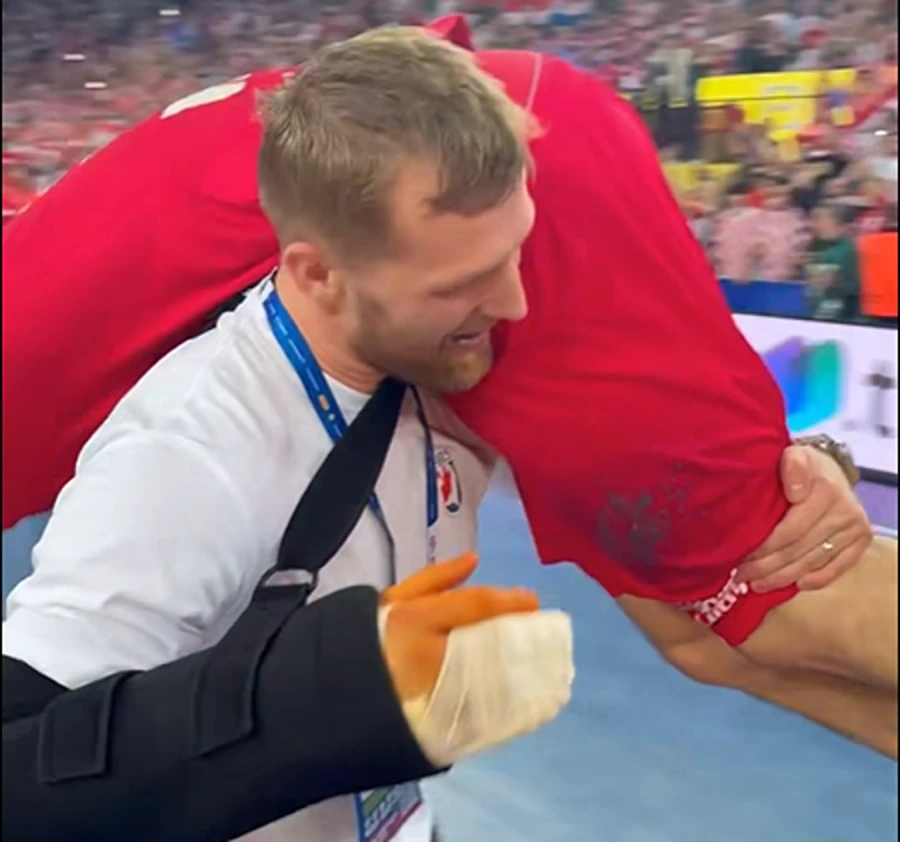 Njegov potez izazvao je oduševljenje – podigao je suigrača Ivana Martinovića na ramena i trčao po terenu, dok su suigrači i publika uživali u prizoru. Hrvatski rukometni savez (HRS) podijelio je snimku ovog trenutka na društvenim mrežama, što je dodatno odjeknulo među navijačima. Snimku ove situacije pogledajt na linku.