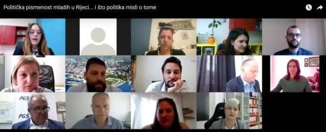 Panel rasprava ,,Politička pismenost mladih u Rijeci … i što politika misli o tome’’ održala se online5. svibnja 2021., a u dva sata trajanja okupila je predstavnike mladih, organizacija civilnog društva, znanstvene zajednice, odgojno-obrazovnih ustanova, kao i kandidate i kandidatkinje za Gradonačelnika/cuGrada Rijeke.