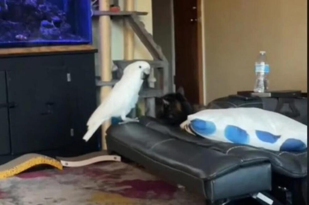 Imati kakadua kao kućnog ljubimca znači zaboraviti na mir i tišinu. Ove ptice poznate su po svojoj izraženoj vokalnoj sposobnosti i često znaju iznenaditi vlasnike imitirajući zvukove iz okoline ili učeći riječi. No, ono što ovaj kakadu najviše voli je – pjevanje! I to ne bilo gdje, već pred svojom omiljenom publikom – mačkom.