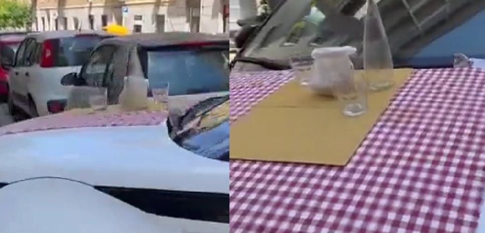 Nakon opetovanog nepropisnog parkiranja od strane neciviliziranog vozača u ulici Muzio Scevola u Rimu (Italija), trgovci i stanovnici Tuscolana smatrali su shodnim natjerati ga da plati tako što su mu ‘postavili’ haubu. Crveno-bijelim kariranim stolnjakom, tipičnim za trattorije, čašama, košaricom za kruh i bokalom s malim cvijetom. Prolaznici tvrde da ovo nije prvi put da je terenac parkiran na nepropisan način ispred restorana.