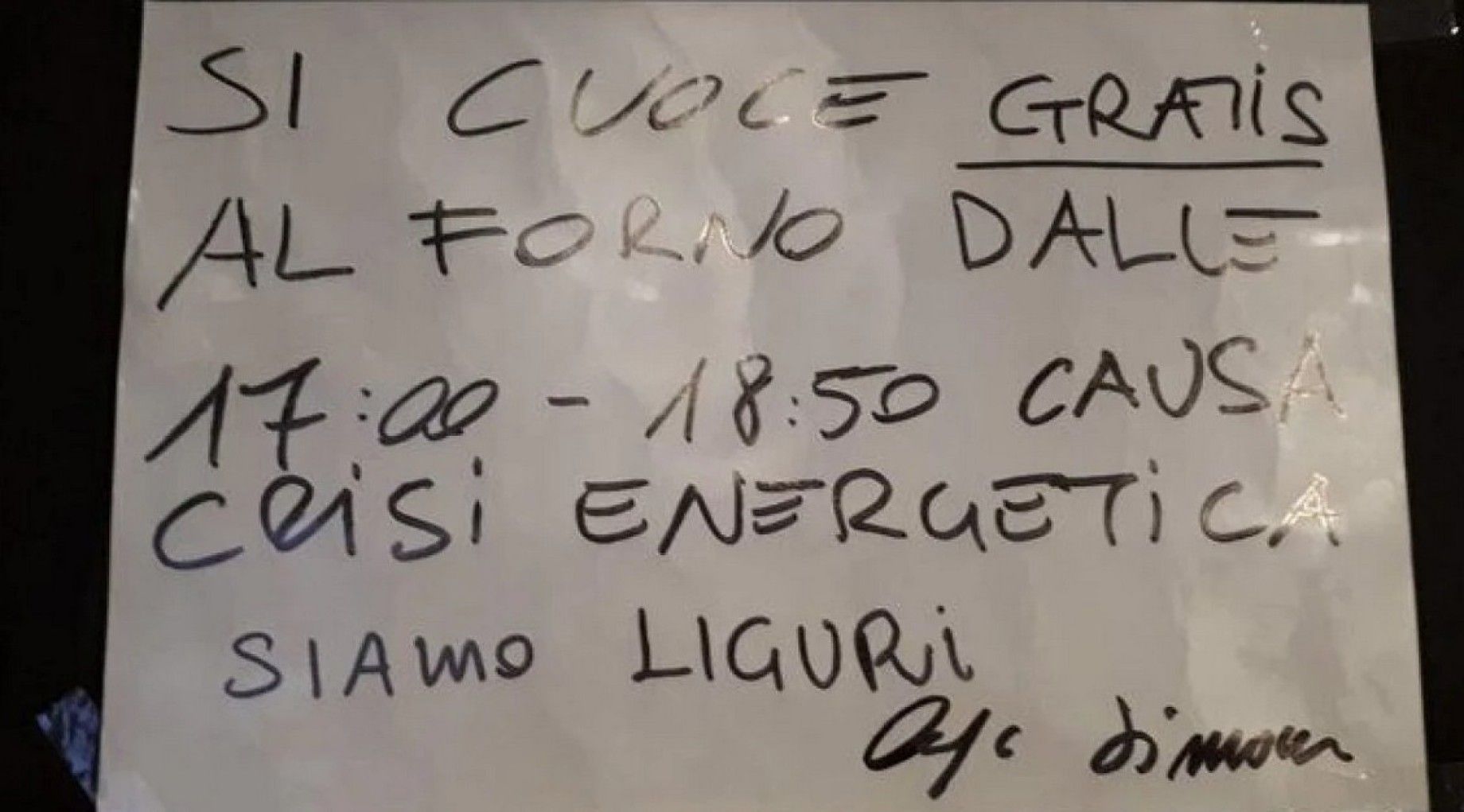 Vlasnik pakare specijalizirane u proizvodnju focaccia u gradu La Spezia, definitivno je ugodno iznenadio mnoge svojim hvalevrijednom, ali i vrlo inteligentnom inicijativom. Simone Arpe, vlasnik Il Frantoio focacceria, odlučio je peć vlastite pekare učiniti dostupnom svima. Od 17 do 18.50 sati svatko tko želi može besplatno koristiti i peći što god želi. Gesta solidarnosti je pokrenuta kao podrška ljudima koji se žale na energetsku krizu, kako stoji na natpisu postavljenom ispred pekare.
