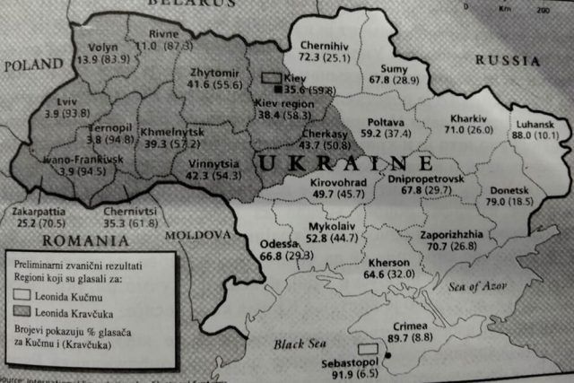 Grafika koju je objavio njemački Bild slična je karti koja se pojavila davne 2000. godine u knjizi “Sukob civilizacija”, gdje je nakon izbora u srpnju 1994. objavljena karta Ukrajine.