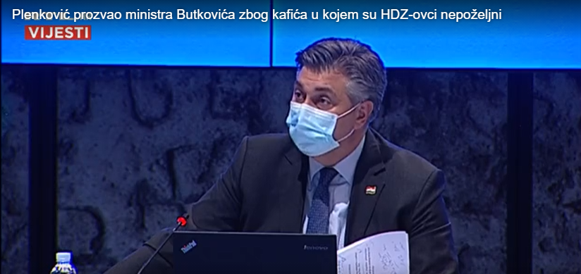 Premijeru Andreju Plenkoviću nije dobro sjelo to što riječki kafić Three Monkeys ne želi HDZ-ovce “u svojoj butigi” pa je na sjednici Vlade prozvao i ministra Olega Butkovića, inače predsjednika HDZ-a Primorsko-goranske županije kojemu je bilo malo i neugodno, što se vidjelo čak i ispod maske, prenosi RTL.