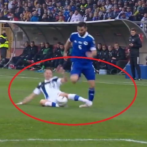 U susretu BiH i Finske u kvalifikacijama za SP u Kataru u 37. minuti dogodio se brutalan start Finca Raitale na bosanskohercegovačkom reprezentativcu i igraču Arsenala Seadu Kolašincu.