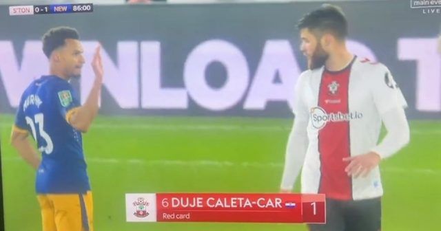 Sudac je opravdano pokazao drugi žuti Ćaleta-Caru, koji se nakon isključenja krenuo naguravati s igračima Newcastlea. Jedan od tih igrača bio je i Jacob Murphy, koji se naslađivao zbog crvenog kartona koji je zaradio hrvatski stoper te mu je mahao dok je odlazio u svlačionicu.