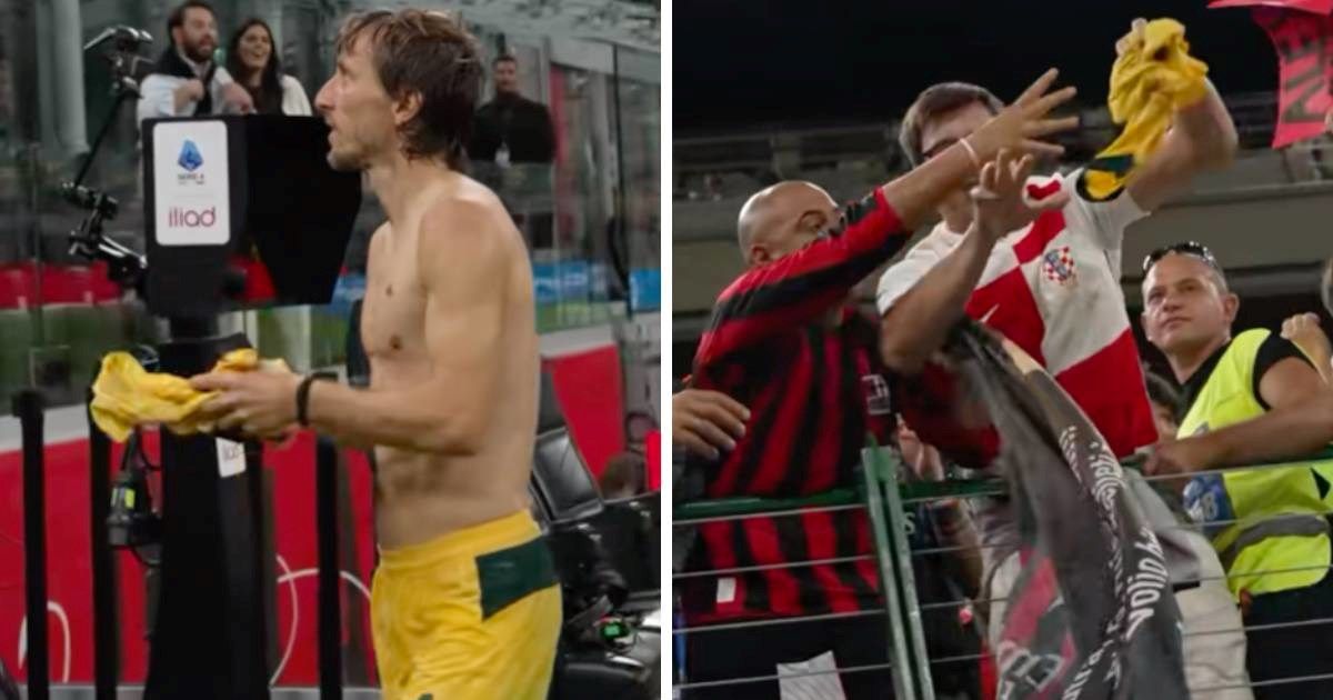 Prilikom odlaska s terena, Modrić je ugledao navijača u hrvatskom dresu na tribinama San Sira. U znak zahvalnosti i ljubavi prema fanovima, skinuo je svoj dres i bacio ga navijaču. Pokušaj drugog fana da ga otme nije uspio, što se može vidjeti na priloženoj snimci koju je objavio Milan.