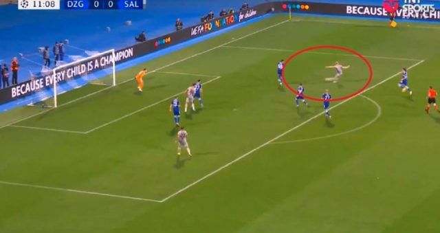 Gosti su počeli bolje i poveli s već nakon 12 minuta igre. Ivanušec je krivo dodao loptu na 30 metara od gola Salzburga i gosti su krenuli u brzu kontru. Mišić je promašio klizeći start na centru, Šeško je donio loptu do šesnaesterca i dao na stranu za Nicolasa Siewalda koji puca kroz noge Perića i vara Livakovića, koji je morao bolje reagirati.