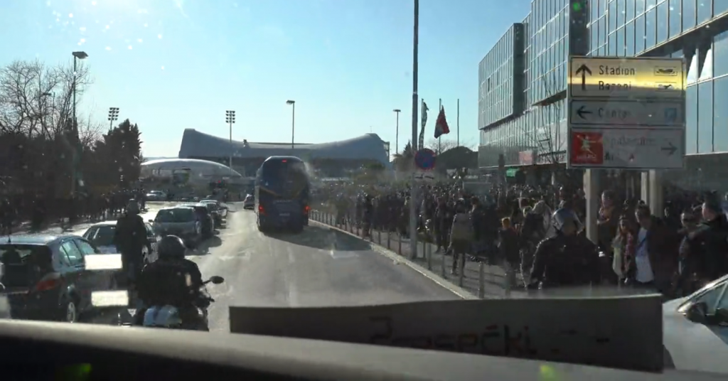Na autobusu kojim su Dinamovi igrači i delegacija maksimirskog kluba dolazili na Poljud razbijeno je staklo, a samo srećom nitko u autobusu nije ozlijeđen.