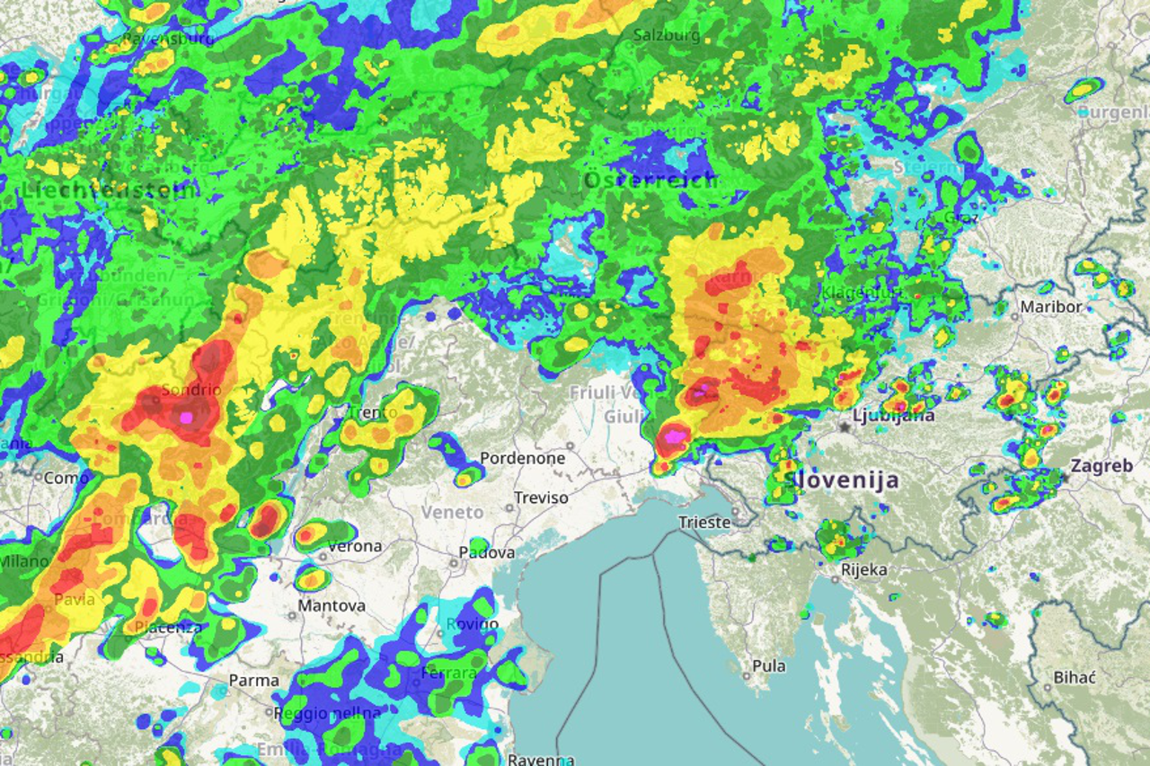 Slovenska meteorološka služba ARSO javlja da se hladna fronta zadržava sjeverno od Alpa, no tijekom petka navečer proći će kroz Sloveniju. Očekuju se obilne padavine (20–40 mm, lokalno i do 80 mm u brdskim predjelima) i osjetno zahlađenje.