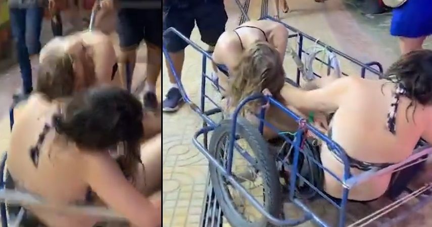 Video datira od 29. studenog. Nakon večeri u četvrti Koh Phi Phi u Krabiju na Tajlandu, dvije turistkinje, jedna Australka i jedna Njemica, zaspale su u baru. Osoblje ih nije uspjelo probuditi. Dakle, kako bi spriječili napadače da ih iskoriste, agenti su posudili metalna kolica iz trgovine na molu i vratili ih u njihov smještaj.