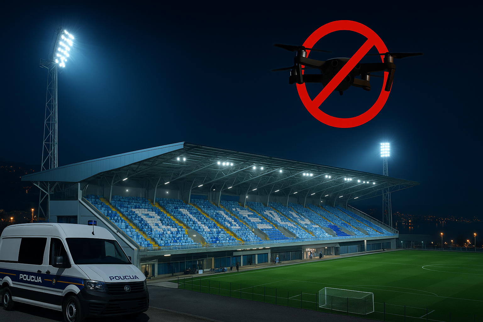 Također, uoči utakmice uspostavlja se zona zabrane letenja u radijusu od 1000 metara oko stadiona Rujevica, i to tri sata prije i tri sata nakon utakmice, temeljem članka 18. Zakona o zračnom prometu.